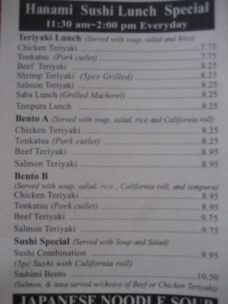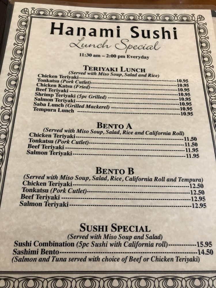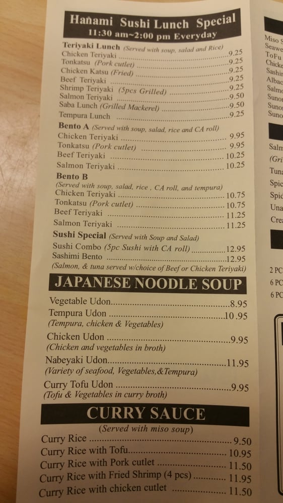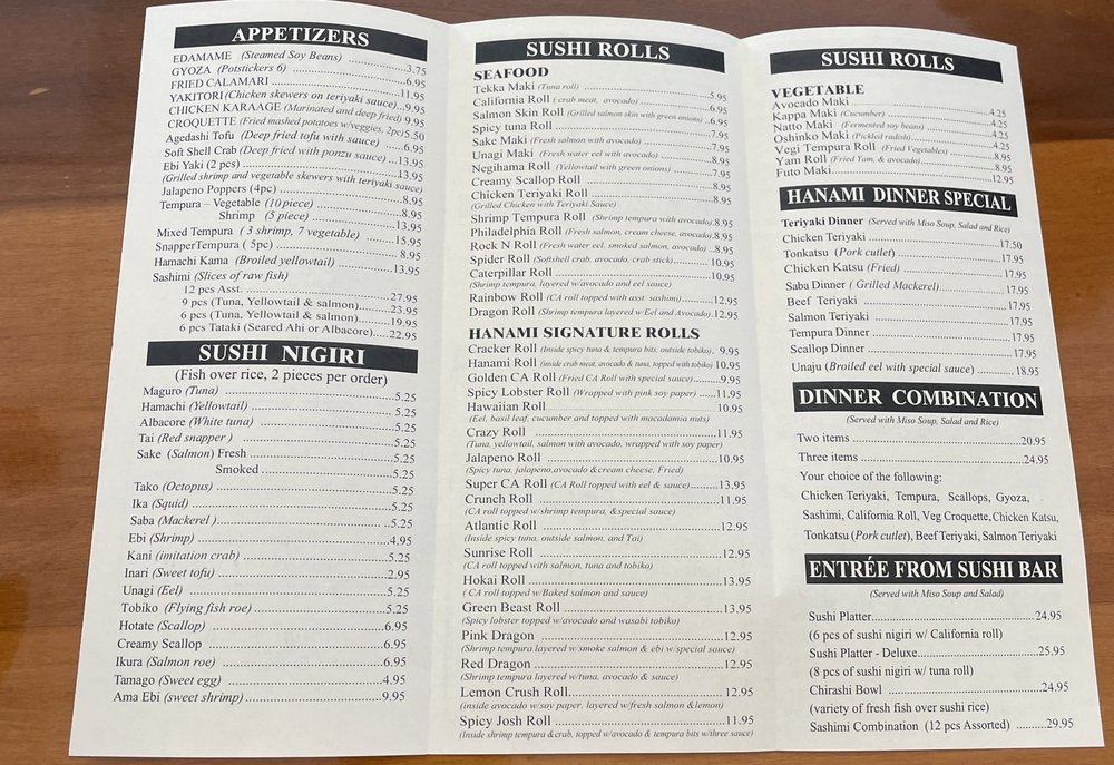 Hanami Sushi Menu